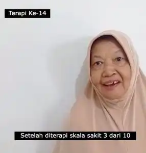 Perjalanan kesembuhannya berlangsung cukup cepat, mengingat usianya yang sudah mencapai 67 tahun dan keluhan saraf kejepit selama lebih dari 3 tahun. Keberhasilannya ini disebabkan oleh kegigihan ibu ini dalam menjalani terapi dan melaksanakan latihan yang diajarkan oleh terapis di rumahnya, dengan rutin melakukan latihan 3 kali sehari.